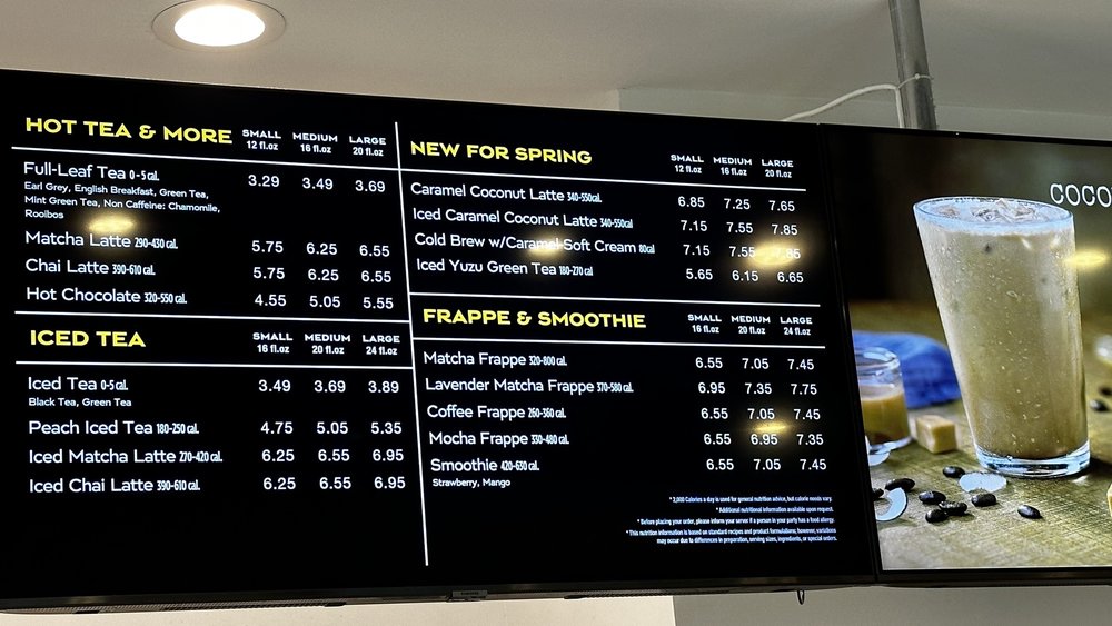Matcha, lavender, and milk of choice blended with ice and topped with whipped cream.Contains: Milk, Soy, Tree nuts